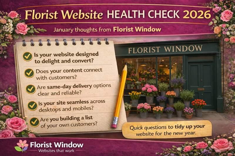 Florist Website Health Check 2026 | Florist Window07 January 2026 Florist Window · Ongoing guidance Florist Website Health Check for 2026 January thoughts from Tim at Florist Window January is always a good time to pause, take stock, and gently tidy things up. This isn’t a sales post. It’s simply a collection of thoughts, questions, and observations I’ve picked up from working closely with independent florists every day. Some will be relevant to you, some won’t. Take what’s useful, ignore the rest. I’ll be sharing more so this first post is intentionally light. Think of it as the start of a wider 2026 health check. A few simple questions to ask yourself There’s no right or wrong here. These are just worth revisiting from time to time. Are you a member of the British Florist Association Are you listed in The Good Florist Guide Are you recognised as a Master Florist Are you a member of the Institute of Professional Florists Memberships don’t automatically generate sales, but they do help with credibility, trust, and positioning. If you already hold them, make sure they’re visible. If you don’t, it may be worth reviewing whether they still align with where your business is today. Strengthening your product offering online One thing many florists overlook is how much range depth matters online. For example, Oasis offer a dedicated funeral product image range. It’s well photographed, professionally styled, and designed specifically to support florists selling funeral work online. Adding more high-quality products to your website can help you: Appear for more searches on Google Give customers more choice Generate repeat value from a one-off investment The cost is currently around £59–£69 as a single payment, ordered directly from Oasis. If you choose to purchase it, they provide a download link. Send that link to us and that’s our green light to add the range to your Florist Window site for you. There’s no obligation. It’s simply another tool available to you. If I were running a florist shop today I’d photograph everything. Not staged shoots once a year. Real designs, leaving the workspace, ready for delivery. Multiple angles. Consistency. A simple tripod, a neutral background, and a small lighting setup can go a long way. You don’t need perfection. You need clarity and honesty. Customers respond well to that. I often say this half-jokingly, but there’s truth in it. With the right setup, you’re halfway to becoming the David Bailey of your own flowers. A simple margin check worth doing Once or twice a year, I would take a quiet hour to review a selection of recent website orders and look closely at what actually reaches the business account. Some website providers publish that they apply percentages or service fees to direct florist sales. Others operate on a flat monthly basis. Neither approach is hidden, but the impact on margins is often only noticed when you stop and look. Understanding whether any deductions apply to product value, delivery charges, or transactions as a whole helps you make informed pricing decisions and keeps your business predictable and transparent. If anything feels unclear, it is worth asking questions and reviewing whether your current setup still aligns with how you want to trade. Pricing consistency matters more than clever pricing One of the biggest turn-offs for customers is confusion. Personally, I’d round prices to the pound. Clean, simple, transparent. No penny-pinching psychology. Looking at Florist Window data from the last 30 days, the average order value across all clients is £58.01. That tells us something important. If customers are already comfortable spending around that figure, opening prices around £45 make sense. It sets expectations clearly and allows for natural upsell options like: Small £45 Medium £50 Large £55 or £60 What I would avoid entirely is showing a thumbnail price that turns out not to match the product shown. If a customer clicks expecting £45 and discovers the image represents a higher price, many will simply leave. That feels like wasted time to them, and time is something shoppers value highly. Tone, trust, and what not to say I’d never describe myself as Number One, Leading, Premier, or Best. It’s self-gratifying, weak persuasion, and can quietly put customers off. Let your work, reviews, and clarity do the talking instead. I’d also review colours carefully. Anything harsh or glaring gets toned down. Calm, balanced colour palettes keep people browsing longer. Phone numbers, addresses, and visibility Check every phone number on your website: Does it dial correctly Is it click-to-call on smartphones Is it easy to find Publishing a real, full address alongside a local-rate landline number still matters. You can now divert a local number to a mobile for roughly £120 per year, no contract. Many florists now use two numbers, especially in larger towns and cities, both ringing the same phone. Older customers often prefer landlines. Younger customers are fine with mobiles. Christmas sales data still shows desktop purchases remain strong, particularly during the day. This isn’t about looking big. It’s about looking established and trustworthy. One thing I’d remove entirely “Sold Out”. I didn’t originally build this feature and I’m increasingly convinced it does more harm than good. Scrolling through dozens of unavailable products turns gift buying into hard work. Customers want to find something they like first, then order it. Making them filter availability before attraction kills momentum. It’s the same frustration as clothes shopping by size. You find something great, then discover it’s unavailable. Enough of that experience and people simply leave. Navigation still matters I’d keep the Contact link visible and prominent. Always. Make sure your phone number and location pin are clear on both desktop and smartphone layouts. If someone wants to call you, don’t